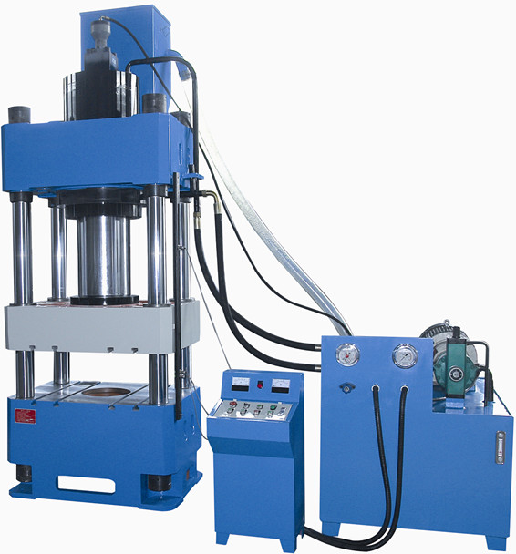 液壓機(jī)基本原理是油泵把液壓油輸送到集成插裝閥塊,通過各個(gè)單向閥和溢流閥把液壓油分配到油缸的上腔或者下腔,在高壓油的作用下,使油缸進(jìn)行運(yùn)動(dòng).液壓機(jī)是 利用液體來傳遞壓力的設(shè)備。液體在密閉的容器中傳遞壓力時(shí)是遵循帕斯卡定律。四柱液壓機(jī)的液壓傳動(dòng)系統(tǒng)由動(dòng)力機(jī)構(gòu)、控制機(jī)構(gòu)、執(zhí)行機(jī)構(gòu)、輔助機(jī)構(gòu)和工作介質(zhì)組成。動(dòng)力機(jī)構(gòu)通常采用油泵作為動(dòng)力機(jī)構(gòu),一般為積式油泵。為了滿足執(zhí)行機(jī)構(gòu)運(yùn)動(dòng)速度的要求, 選用一個(gè)油泵或多個(gè)油泵。低壓(油壓小于2.5MP)用齒輪泵;中壓(油壓小于6.3MP)用葉片泵;高壓(油壓小于32.0MP)用柱塞泵。各種可塑性 材料的壓力加工和成形,如不銹鋼板的擠壓、彎曲、拉深及金屬零件的冷壓成形,同時(shí)亦可用于粉末制品、砂輪、膠木、樹脂熱固性制品的壓制。